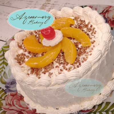 Pastel de tres leches y durazno